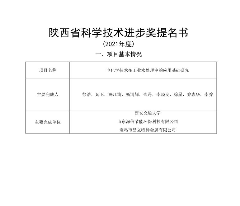 根據(jù)陜西省科技獎勵有關(guān)要求,現(xiàn)將我司2020年度陜西省科技獎合作申報項目 “電化學(xué)技術(shù)在工業(yè)水處理中的應(yīng)用基礎(chǔ)研究”信息在公司主頁(http://m.vertebot.com/)上公布,向全校征詢異議。
